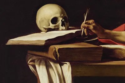 Jerome writing was painted, according to bellori, for pope paul v's nephew, cardinal scipione borghese, who only arrived in rome in the summer of 1605, but rapidly became a keen collector of caravaggio's work. Caravaggio's use of dramatic lighting or chiaroscuro, and realistic approach to religious subject matter had a strong influence on his contemporaries, such as ribera, rembrandt, and georges de la tour. The saint is looking at a human skull, a reminder of a world full of vanity and looming death. The piece depicts a thin, ageing st. Obviously the model was the same as that for the montserrat st.